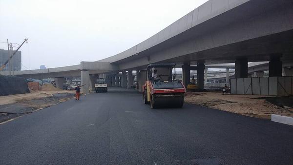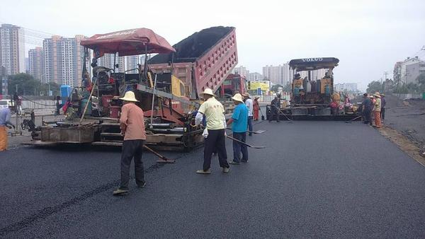 6月23日,二環(huán)南四標(biāo)進(jìn)行立交橋下快車道瀝青攤鋪??燔嚨赖酌鎸佑么至J紸c-25面積為12000平方,中面層用中粒式Ac-16面積為14300平方。攤鋪前攤鋪?lái)?xiàng)目部提前計(jì)劃,合理安排,共組織4臺(tái)攤鋪機(jī),2臺(tái)壓路機(jī);攤鋪過(guò)程中現(xiàn)場(chǎng)施工人員緊密配合,加強(qiáng)對(duì)每一環(huán)節(jié)檢測(cè)控制與管理,保證了攤鋪質(zhì)量。預(yù)計(jì)到26日完成此次攤鋪任務(wù)。