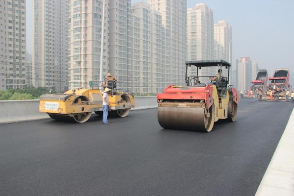 6月23日,二環(huán)南四標進行立交橋下快車道瀝青攤鋪??燔嚨赖酌鎸佑么至J紸c-25面積為12000平方,中面層用中粒式Ac-16面積為14300平方。攤鋪前攤鋪項目部提前計劃,合理安排,共組織4臺攤鋪機,2臺壓路機;攤鋪過程中現(xiàn)場施工人員緊密配合,加強對每一環(huán)節(jié)檢測控制與管理,保證了攤鋪質(zhì)量。預(yù)計到26日完成此次攤鋪任務(wù)。