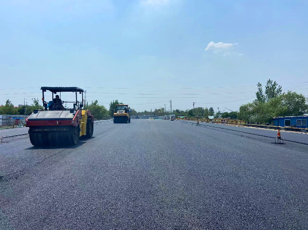6月19日,匯通公司承建的起步區(qū)智慧物流園二期一標(biāo)段英才學(xué)院南路西段青寧溝橋梁橋面中粒式瀝青攤鋪圓滿完成?! ∮⒉艑W(xué)院南路西段青寧溝橋梁采用鋼混組合梁,全長(zhǎng)92米,攤鋪面積2000平方米。橋梁不分幅,總寬33米,橋梁為直斜橋,斜交角71°。施工過程中人員分工、機(jī)械設(shè)備調(diào)配、現(xiàn)場(chǎng)組織管理井然有序,對(duì)瀝青攤鋪溫控和厚度、碾壓工藝等進(jìn)行嚴(yán)格把關(guān)?! ∮⒉艑W(xué)院南路西段青寧溝橋橋面瀝青攤鋪完成,標(biāo)志著項(xiàng)目邁入了附屬施工的新階段,為項(xiàng)目建成通車打下堅(jiān)實(shí)基礎(chǔ)。