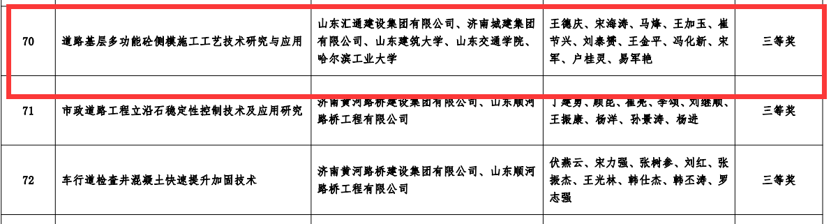 近日,山東匯通建設集團有限公司工程管理部根據濟南土木建筑學會轉發(fā)的《推薦2021年度“山東土木建筑科學技術獎”》的通知要求和評審辦法積極組織申報建設科技創(chuàng)新成果獎。公司申報的3項課題全部獲獎,其中“低溫期瀝青路面施工工藝技術研究與應用”項目獲二等獎,“耐高溫抗車轍瀝青路面施工工藝技術研究與應用”項目獲三等獎,“道路基層多功能砼側模施工工藝技術研究與應用”項目獲三等獎。三個項目經專家評價總體達到國家先進水平。