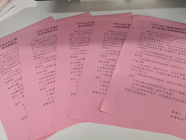 為進(jìn)一步提高分公司全體黨員干部自覺(jué)遵守黨的紀(jì)律和國(guó)家法律法規(guī)意識(shí),有效遏制酒后駕車問(wèn)題發(fā)生,近日,匯通公司黨總支組織簽訂《杜絕酒駕承諾書(shū)》。